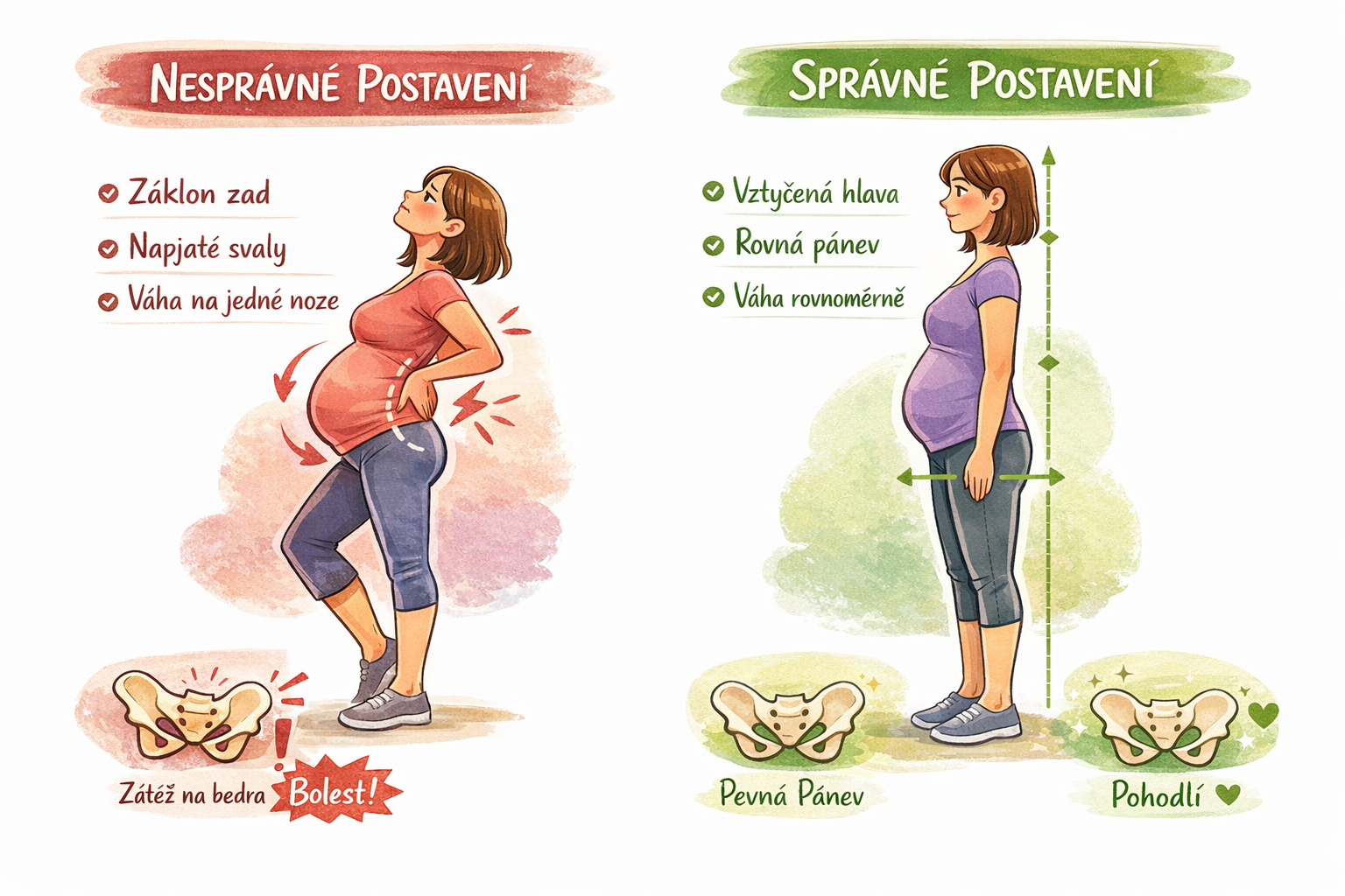 Správné držení těla v těhotenství: jak správně stát a ulevit zádům i pánvi